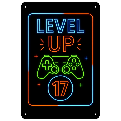 Blechschild 20x30cm – Level Up 17 Gaming Neon Controller Motiv